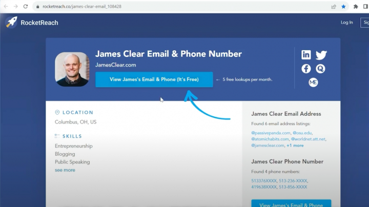 So if you search google for terms for like “Elon Musk’s Email” or “James Clear’s Email” a result for Rocket Reach appears.