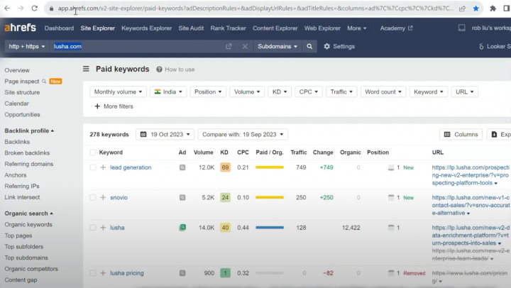 I’m able to use this tool, Ahrefs and it will tell me where my competitor Lusha is advertising.