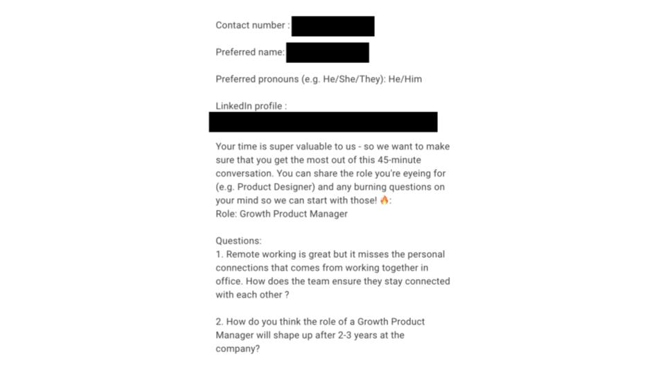 Much like the rest of our teams, hiring PMs was a relatively new experience for us, so it meant having plenty of iterations to the process. The game-changer for us was the “coaching piece” in STEP 3. This approach helped keep candidates engaged; it presented a learning element since they got 15-minute 1:1s with leaders to capture unique perspectives and helped candidates create more meaningful outcomes.