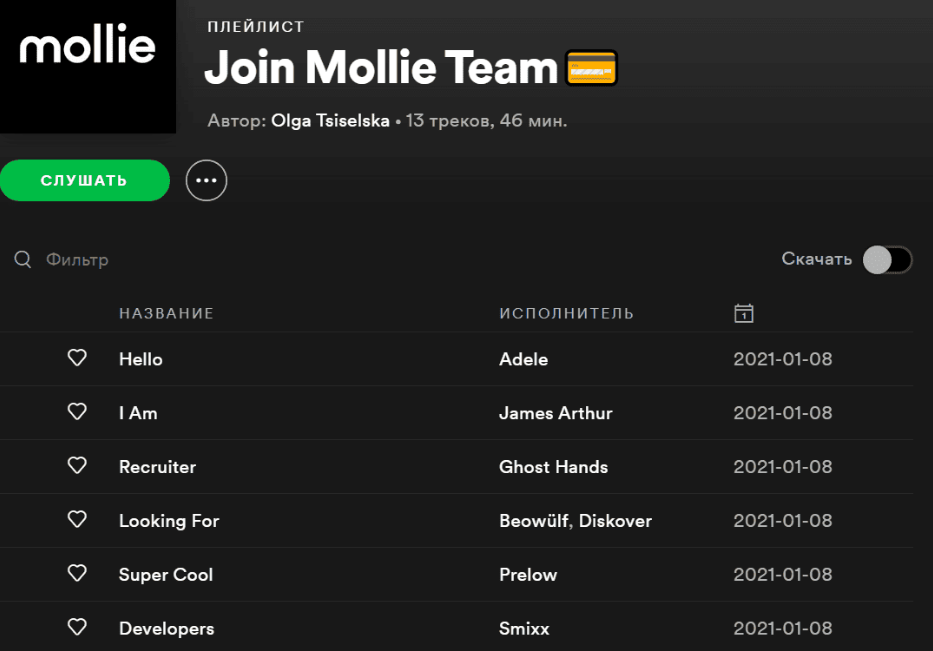#2 European Fin-tech Mollie, added a Spotify playlist in their outreach