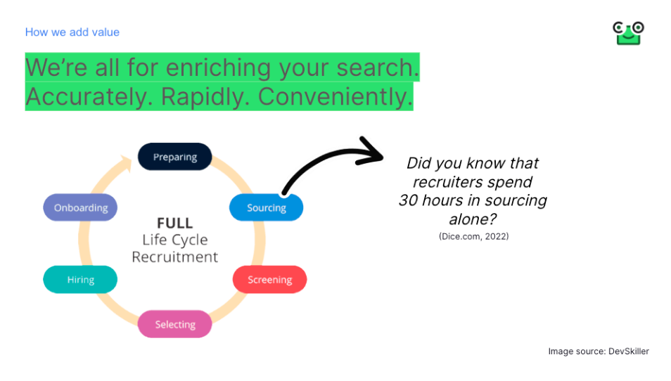 Candidates are naturally curious about what differentiates our product. This slide addresses the robustness and potential of our solution.