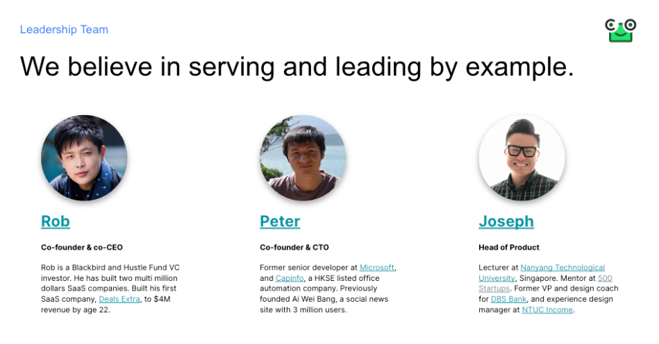 Giving candidates a glimpse of the people behind the product can help them envision themselves as part of the team and answer the question of “Who can I learn from?” or “what can I learn from them?”