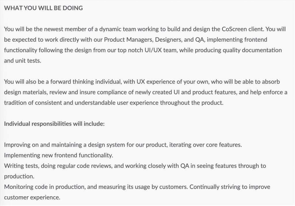 - Why: Candidates need to understand what’s expected in the role and what their day-to-day will look like.