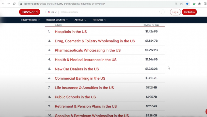 When actually, according to IbisWorld, the biggest industries globally are telecommunications, energy, insurance. real estate, automotive, banking, healthcare, hospitals, pharmaceuticals, as well as schools and universities.