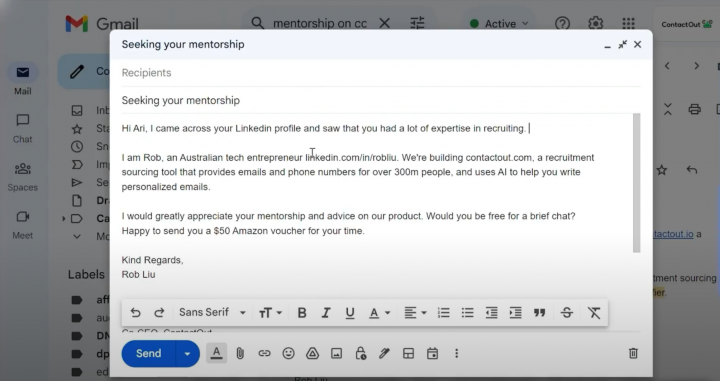 So I would reach out to recruiters who are ContactOut’s target audience with an email like: