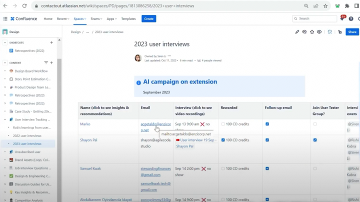 We’d also interview existing users of contact out to get their feedback on different aspects of our tool that they have used.
